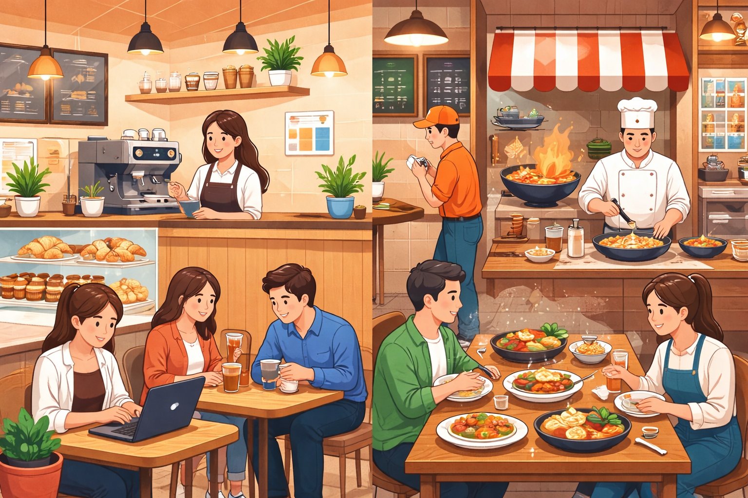 예를 들어 업태에서 ‘소매업’이 정해졌다면, 종목에서는 ‘음식 > 한식’과 같이 자세하게 분류합니다. 업종 코드를 선택하면 자동으로 분류됩니다.